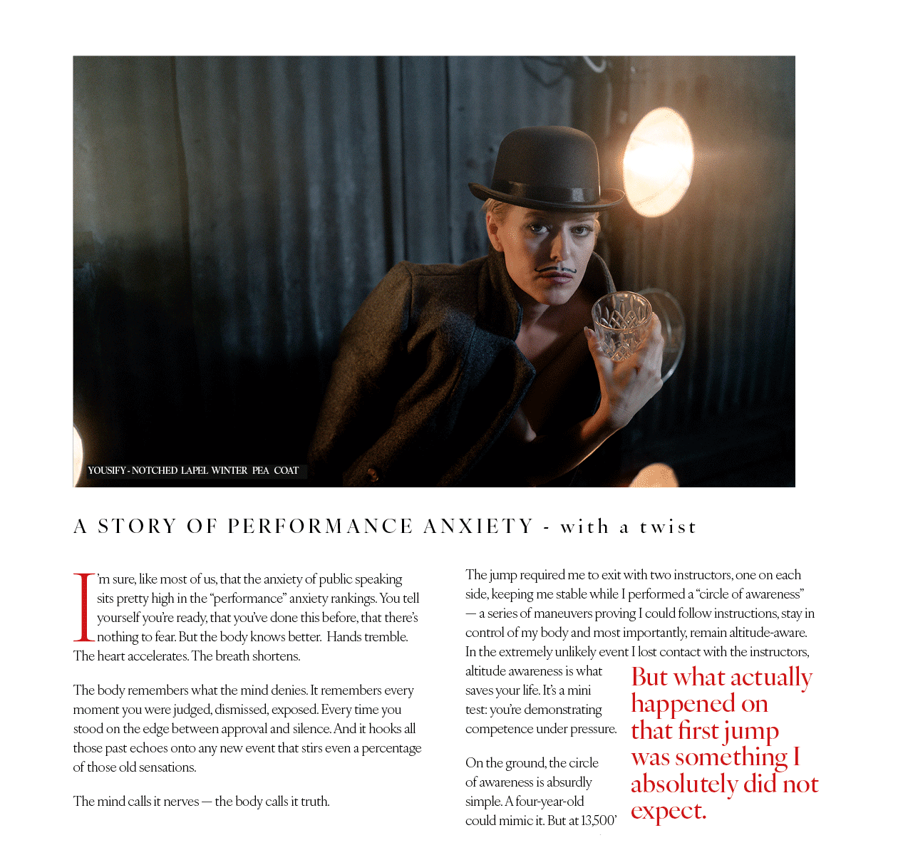 Stories of humanity: contradiction, presence, ambition, fragility, and the strange business of being alive inside it all.
